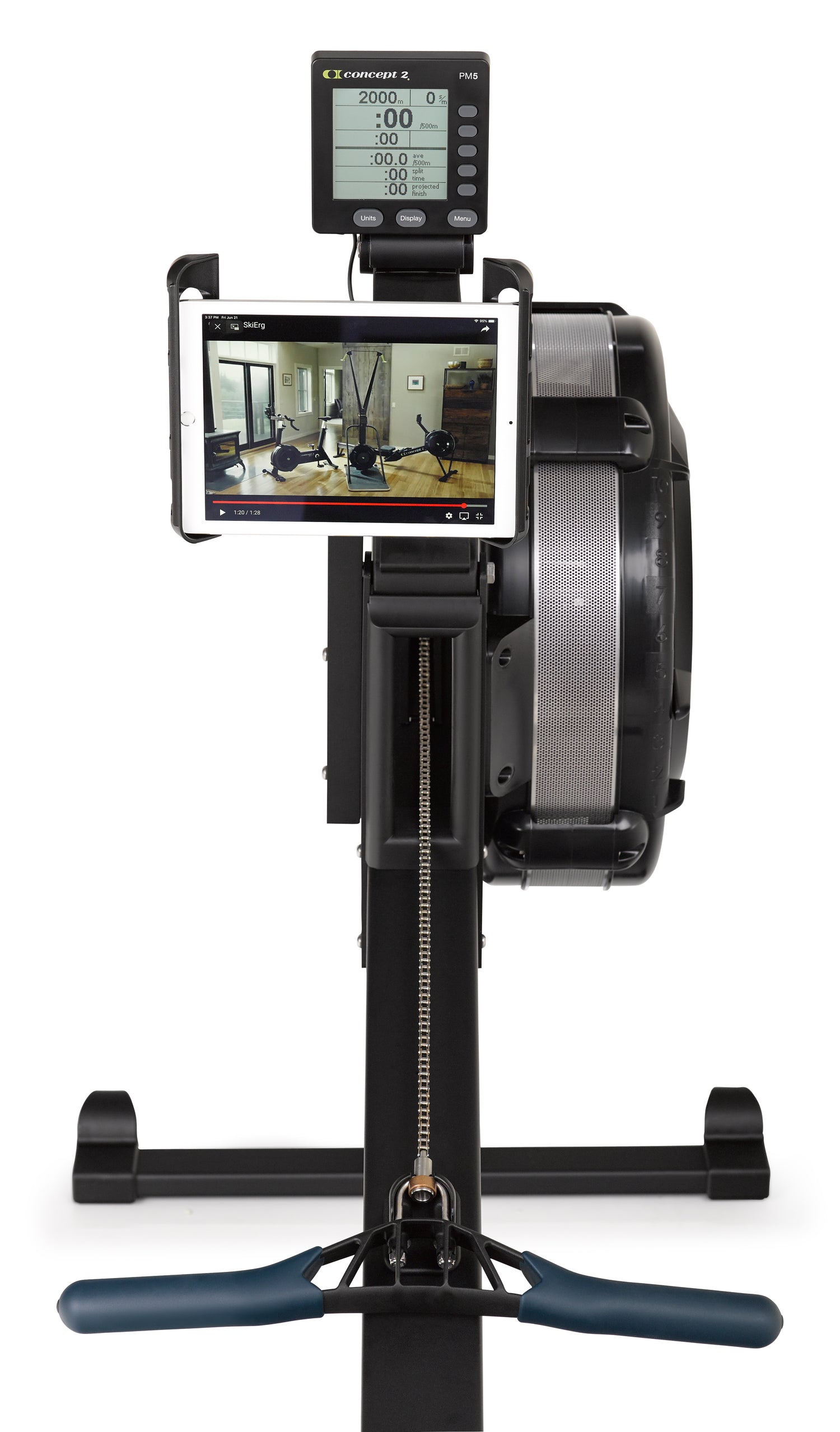 Nu är det enklare än någonsin att använda ErgData eller någon av dina andra favoritappar under ditt roddpass. Med varje ny RowErg följer en hållare som passar både din smartphone och läsplatta.